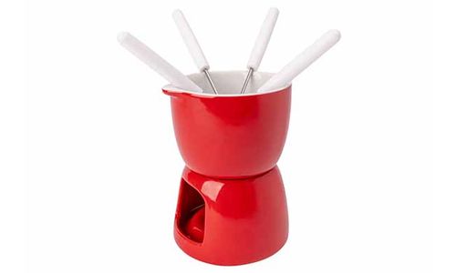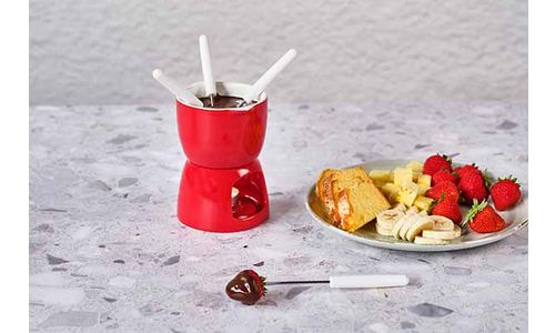 Fondue Chocolade D11,5cm Rood Porselein + 4 Vorken