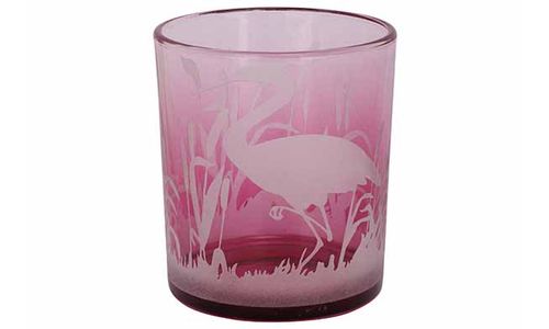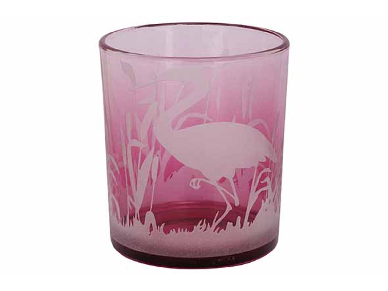 Theelichthouder Flamingo Fuchsia 9x9xh10 Cm Glas