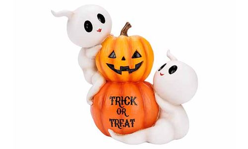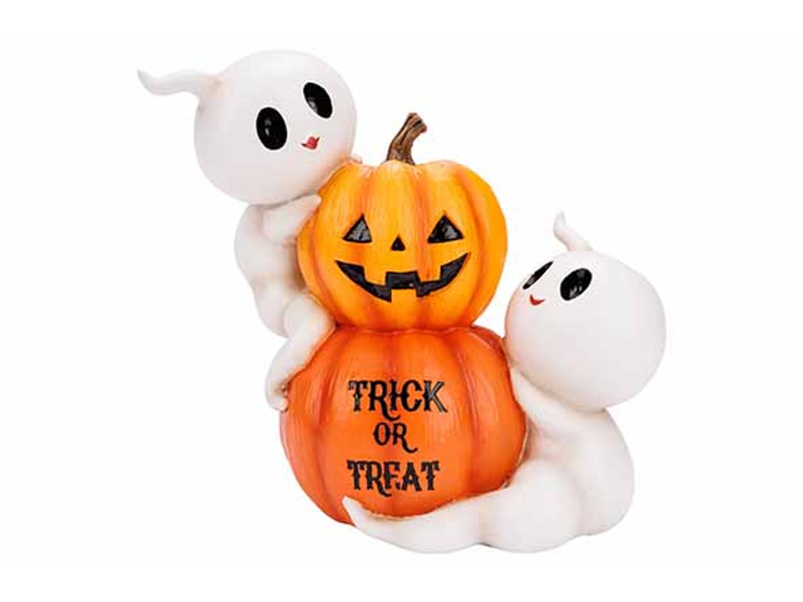Pompoen Met Spook White Oranje 22x11xh21 Cm Polyresin