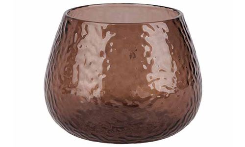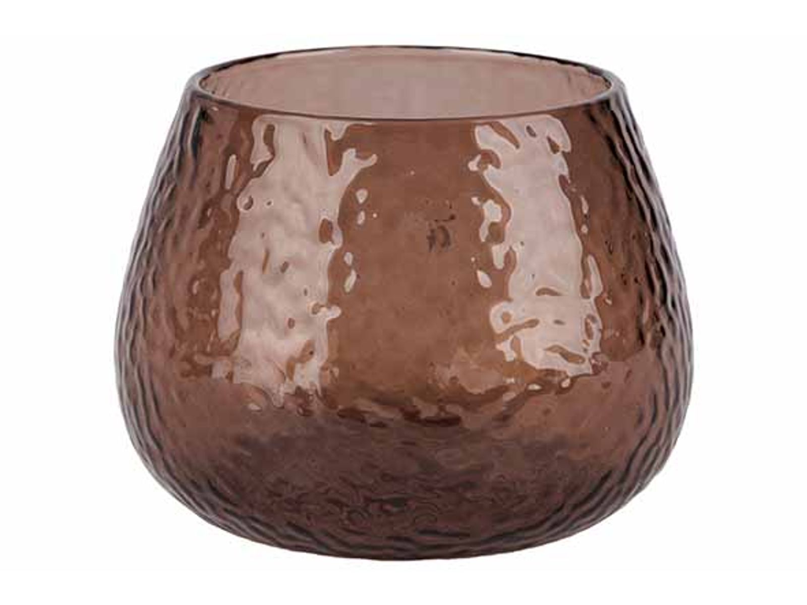 Theelichthouder Hammered Bruin 10x10xh7, 5cm Glas