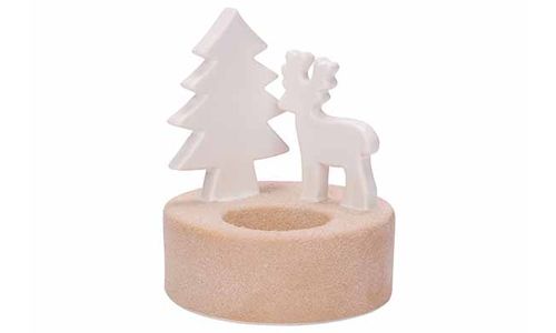 Theelichthouder Tree And Deer Wit 10x10x H12cm Rond Keramiek