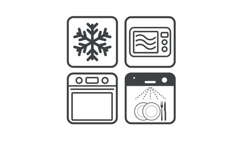 - Geschikt voor in de oven (250°C), magnetron, diepvriezer (-20°C), vaatwasser