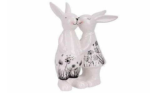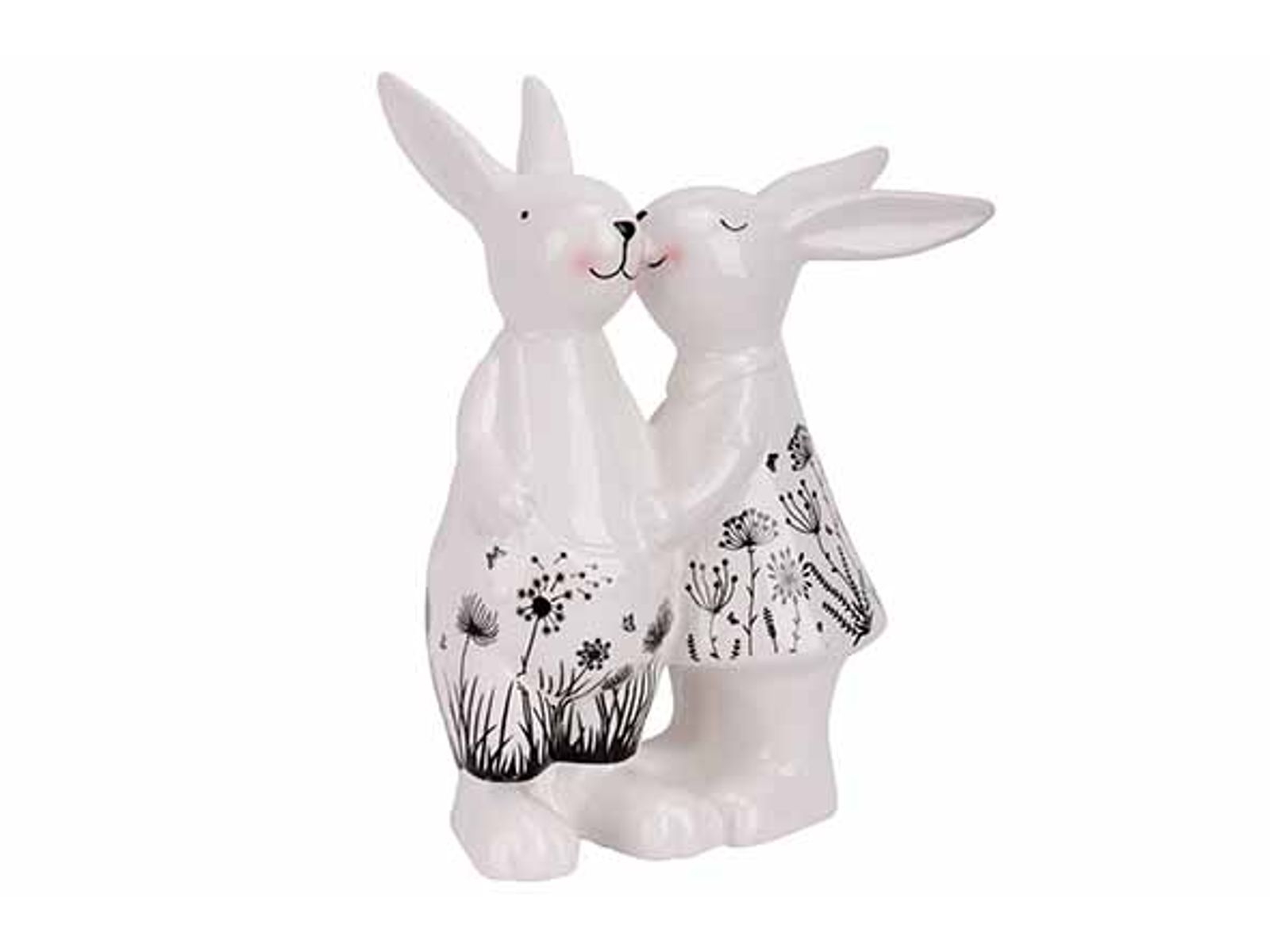 Koppel Rabbits Dotted Wit - Zwart 14,3x9 ,4xh19,3cm Langwerpig Dolomiet