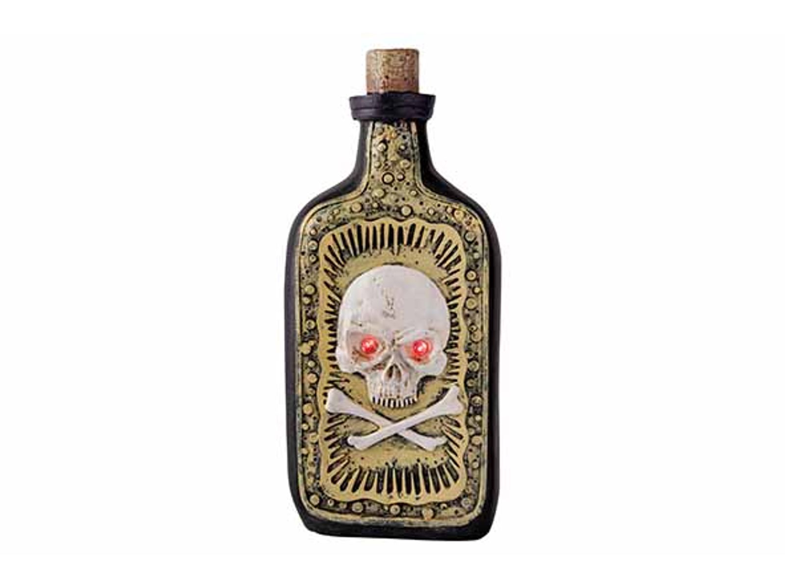 Fles Doodskop Poison Zwart 3x6xh13cm Pol Yresin Incl 2 Lr44 Batt