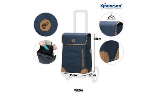 Samen met de Shopper® tas Weda wordt de Shopper® een eyecatcher. Met een inhoud van 36 liter is de Weda tas een kleine Shopper® tas, maar toch groot genoeg voor boodschappen in de supermarkt of op de wekelijkse markt. Een binnenzak en een zijvak bieden ruimte voor een portemonnee, mobiele telefoon en sleutels. De Weda tas is waterafstotend en dankzij de reflectoren ook in het donker of bij slecht weer goed zichtbaar.