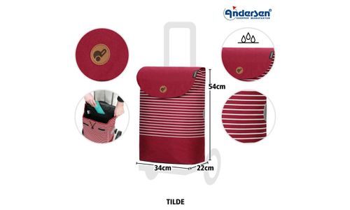 Samen met de Tilde Shopper® tas wordt winkelen een eyecatcher. De Tilde tas is verkrijgbaar in mint en rood met subtiele witte strepen in een Scandinavisch design. Het formaat van de Tilde tas is voldoende voor boodschappen in de supermarkt of de wekelijkse markt. In de binnenzak kunnen kleine spullen worden opgeborgen. De Shopper® tas Tilde wordt onder de ronde deksel gesloten met een trekkoord voor meer stabiliteit en veiligheid. Dankzij de materiaalsamenstelling is de Shopper® tas Tilde waterafstotend en bestand tegen lichte vervuiling. Reflectoren aan de zijkanten zorgen voor een goede zichtbaarheid, zelfs in het donker of bij slecht weer.