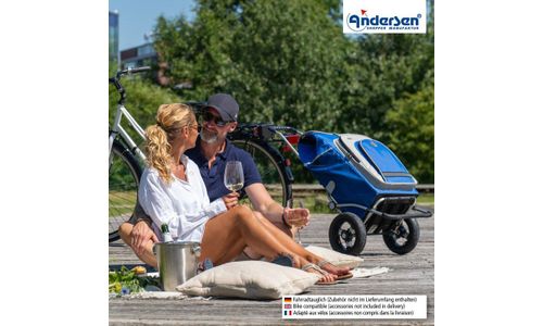 De Royal Shopper® met kogelgelagerde luchtwielen is dankzij de vervaardiging uit hoogwaardig aluminium bijzonder stil en zeer stabiel. Met behulp van het speciaal ontwikkelde Bike & Easy koppelsysteem kan de Royal Shopper® als fietskar aan vrijwel iedere standaard fiets worden bevestigd. Met een totaal draagvermogen van 50 kg zijn zelfs zware lasten geen probleem voor de Royal Shopper®.
