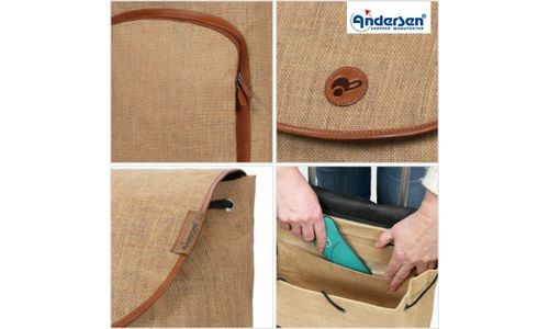 Samen met de tas Reik wordt de Shopper® een eyecatcher. De hernieuwbare natuurvezeljute is bijzonder robuust en resistent en geeft elke tas een individuele uitstraling. Applicaties van echt leer zorgen voor een nobele touch. Met een inhoud van 50 liter is de tas groot genoeg voor boodschappen in de supermarkt of een uitje met vrienden. Een voorvak en een binnenzak bieden ruimte voor kleine spullen.
