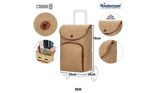 Samen met de tas Reik wordt de Shopper® een eyecatcher. De hernieuwbare natuurvezeljute is bijzonder robuust en resistent en geeft elke tas een individuele uitstraling. Applicaties van echt leer zorgen voor een nobele touch. Met een inhoud van 50 liter is de tas groot genoeg voor boodschappen in de supermarkt of een uitje met vrienden. Een voorvak en een binnenzak bieden ruimte voor kleine spullen.