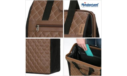 Samen met de Inra tas voor de Shopper® wordt de winkelwagen een blikvanger. Met zijn elegante retro-design, portemonnee-sluiting op het deksel en eenvoudig doorgestikt motief is de tas van natuurlijke materialen en gecertificeerd echt leer de perfecte metgezel voor het winkelen op de wekelijkse markt of supermarkt. De Inra Shopper® tas is met 44 liter groot genoeg en biedt daarnaast ruimte voor een portemonnee, mobiele telefoon en sleutels in de binnenzak of het verborgen voorvak. De Inra tas is waterafstotend en bestand tegen lichte vervuiling dankzij de donkergekleurde bodem. Reflectoren aan de zijkanten zorgen voor een goede zichtbaarheid, zelfs in het donker, en omdat de Inra tas is gemaakt van natuurlijke materialen zijn kleine kleurvariaties of onregelmatigheden mogelijk.