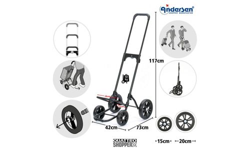De Quattro Shopper® is een allround talent. Trekken of duwen, twee of toch liever vier wielen? De Quattro Shopper® overtuigt door zijn flexibiliteit. Afhankelijk van uw wensen kan het Shopper®-frame eenvoudig worden getransformeerd van een Shopper® met twee wielen naar een stevige boodschappentrolley met vier wielen en zo worden aangepast aan uw persoonlijke wensen. De traploos verstelbare handgreep maakt een optimale handpositie mogelijk zonder de rug te belasten. Dit maakt de Quattro Shopper® ook voor kleinere mensen een praktische metgezel. De fluisterwielen zijn zeer stil en lopen soepel, zelfs op oneffen ondergrond.
