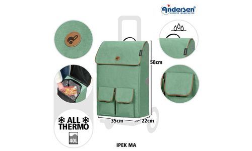 Samen met de IPEK Ma volledige thermotas blijven de boodschappen koel en vers. De grote, volle thermo Shopper®-tas biedt met een inhoud van 42 liter voldoende ruimte voor gekoeld eten en drinken en houdt deze lang vers. Twee aparte voorvakken in trendy cargo-look bieden bovendien ruimte voor kleine spullen zoals sleutels of een portemonnee. De tas is door de materiaalsamenstelling waterafstotend en bestand tegen lichte vervuiling. Reflectoren aan de zijkanten zorgen voor een goede zichtbaarheid, zelfs in het donker en bij slecht weer.
