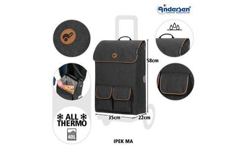 Samen met de IPEK Ma volledige thermotas blijven de boodschappen koel en vers. De grote, volle thermo Shopper®-tas biedt met een inhoud van 42 liter voldoende ruimte voor gekoeld eten en drinken en houdt deze lang vers. Twee aparte voorvakken in trendy cargo-look bieden bovendien ruimte voor kleine spullen zoals sleutels of een portemonnee. De tas is door de materiaalsamenstelling waterafstotend en bestand tegen lichte vervuiling. Reflectoren aan de zijkanten zorgen voor een goede zichtbaarheid, zelfs in het donker en bij slecht weer.