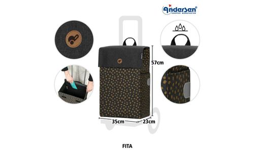 Samen met de Fita tas biedt de Shopper® een solide winkelervaring. De Shopper® tas Fita heeft een klassiek design met gouden stippen op een donkerblauwe of zwarte achtergrond. Met zijn capaciteit is hij groot genoeg voor een week boodschappen. Kleine spullen kun je opbergen in de binnenzak of in het zijvak. Dankzij de materiaalsamenstelling is de Shopper® tas Fita waterafstotend en bestand tegen lichte vervuiling. Reflectoren zorgen voor een goede zichtbaarheid, zelfs bij slecht weer of in het donker.