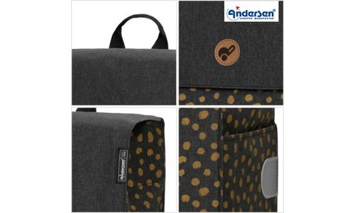 Tijdens lange reizen of korte winkeltrips biedt de Komfort Shopper® met zijn geïntegreerde uitklapbare stoel altijd de mogelijkheid om even te pauzeren. De winkelwagen met zitje heeft een draagvermogen van 50 kg en kan ook zware aankopen zoals kratten drank zonder problemen veilig vervoeren. Met behulp van het speciaal ontwikkelde Andersen Bike&Easy koppelsysteem kan de Komfort Shopper® in slechts enkele stappen als boodschappentrolley op de fiets worden gebruikt. De fluisterwielen zijn zeer stil en lopen soepel, zelfs op oneffen ondergrond.