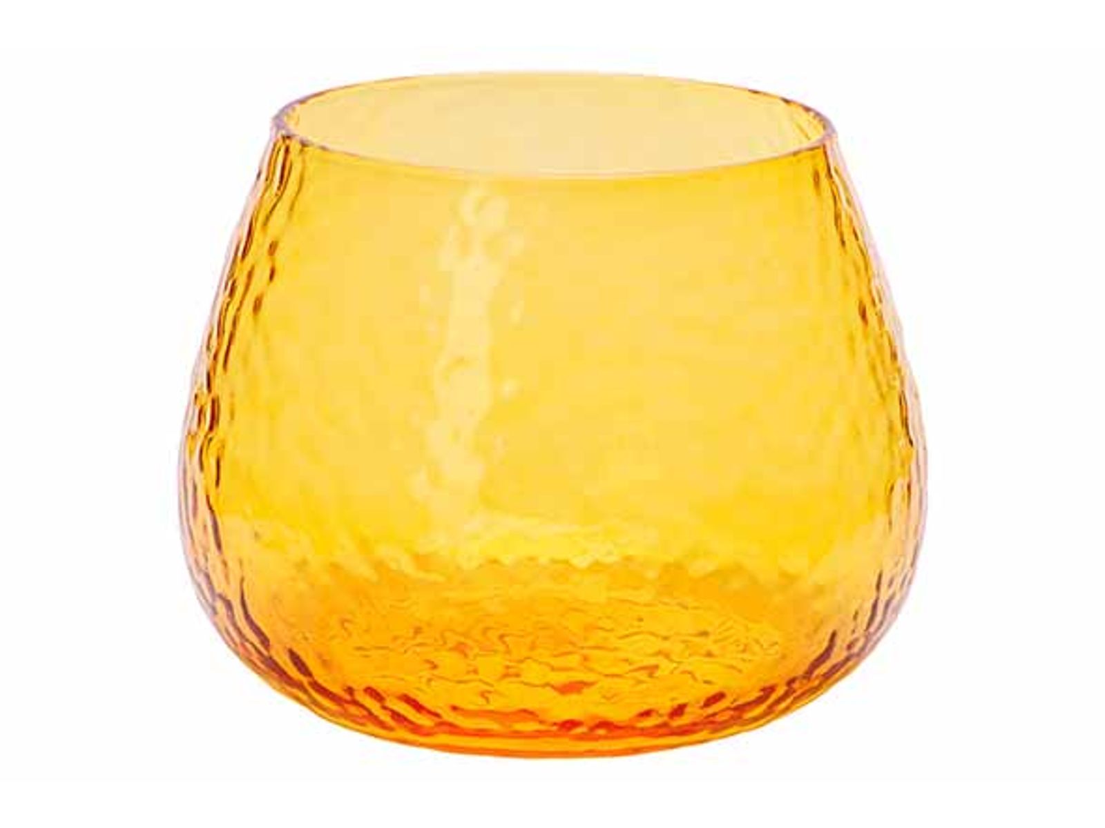 Theelichthouder Hammered Geel 10x10xh7,5 Cm Glas