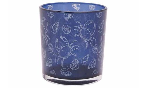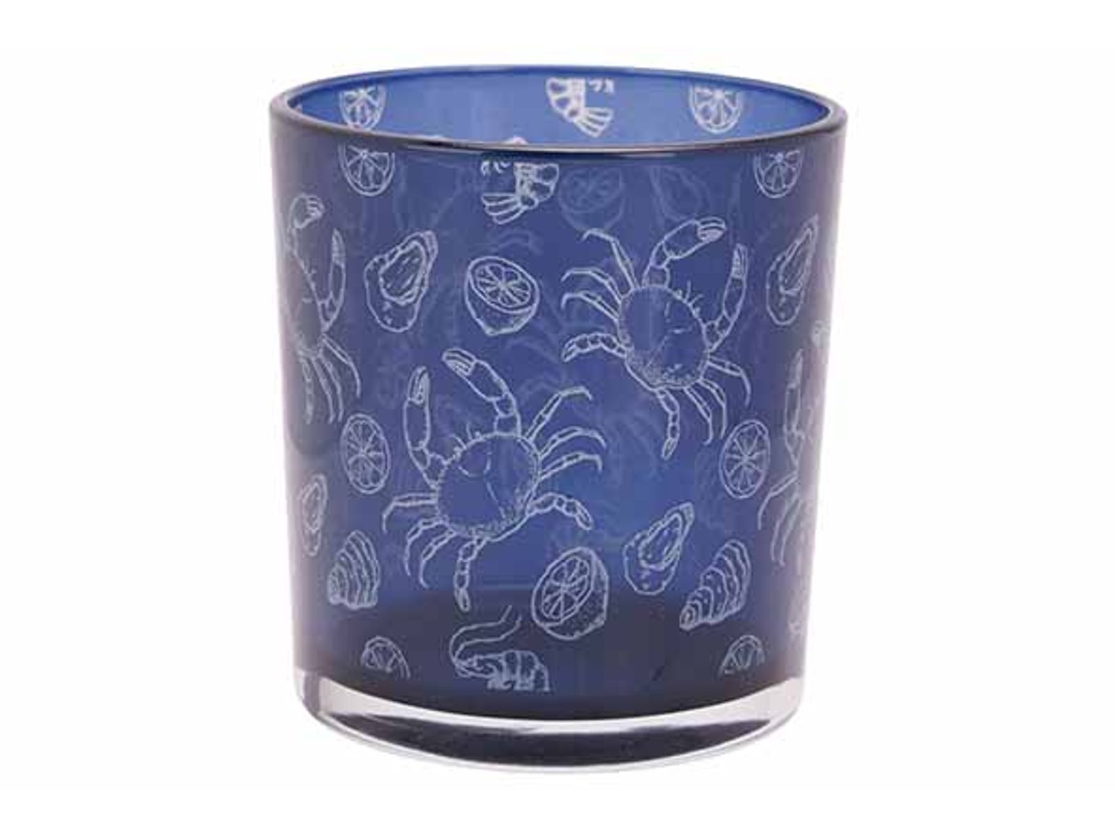 Theelichthouder Crabs Blauw 7x7xh8cm Gla S