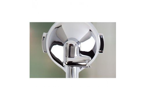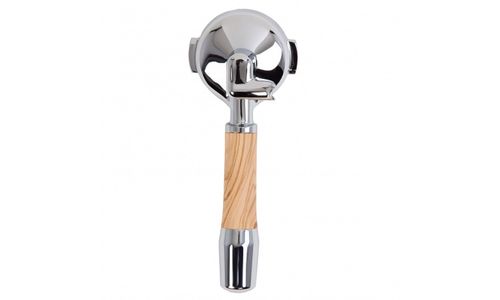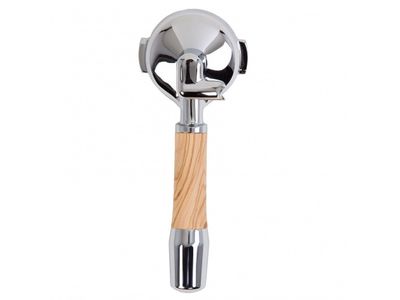 Hoogwaardig verchroomde filterdrager met één uitloop en uitgebalanceerd gerookt eiken houten handvat. Ligt perfect in de hand dankzij de uitgebalanceerde gewichtsverdeling. Geschikt voor alle ECM E-61 zetgroep machines