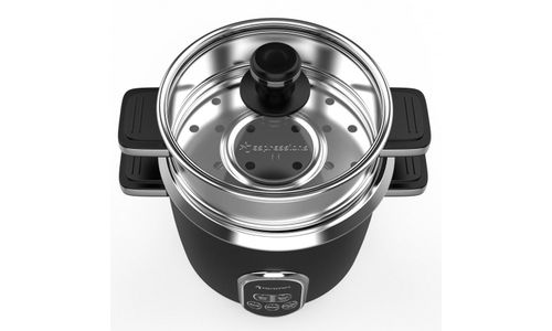Kook rijst perfect gaar zonder erbij te hoeven blijven. Na het koken van de rijst schakelt de Smart Rice Cooker automatisch naar de Keep Warm functie. Dit multi-functionele apparaat heeft een RVS-binnenpan met een inhoud van 1,4 liter voldoende voor een huishouden tot 5 personen. Het apparaat wordt geleverd met een RVS-stoommand, luxe glazen deksel, rijstlepel en maatbeker. De Smart Rice Cooker beschikt over twee standen; voor witte én bruine rijst. De sauteerfunctie om kort aan te braden, de stoomfunctie en keep warm functie maken dit kwaliteitsproduct compleet. Kook rijst perfect gaar, stoom je groenten en sauteer vis of vlees.