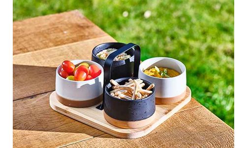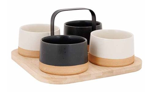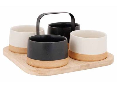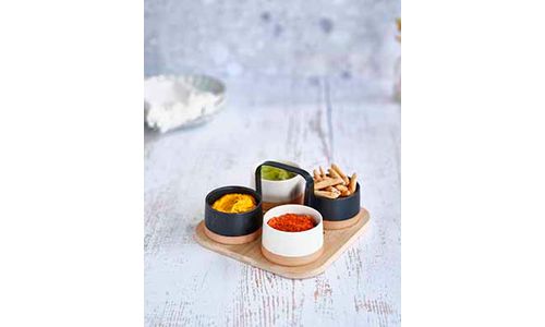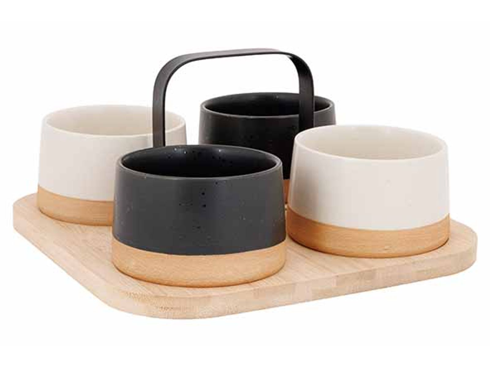 Aperoset Bamboe Serveerplank + 4 Schalen D9xh5,5cm
