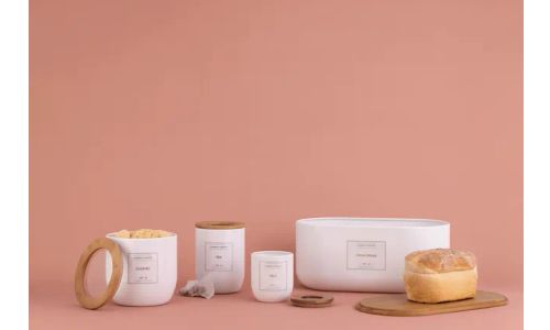 - Eigentijdse apothekersstijl met neutrale tinten en contrasterend bamboe in donkere tinten.