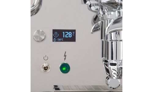 De Synchronika II biedt een intuïtieve bediening met een handige draaiknop, waarmee je eenvoudig door de menu's navigeert en instellingen aanpast. Het OLED-display geeft helder de gekozen instellingen weer, zoals de temperatuur, zodat je elke keer de perfecte koffie kunt zetten. Daarnaast is de machine voorzien van een shot counter, die het aantal bereide koffies bijhoudt.