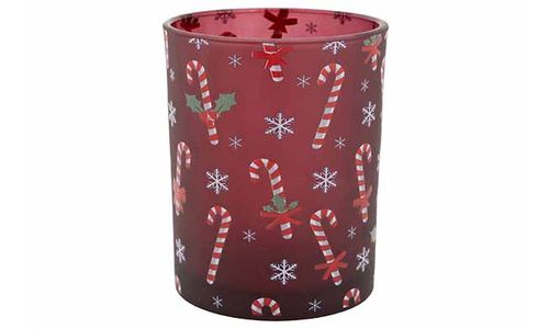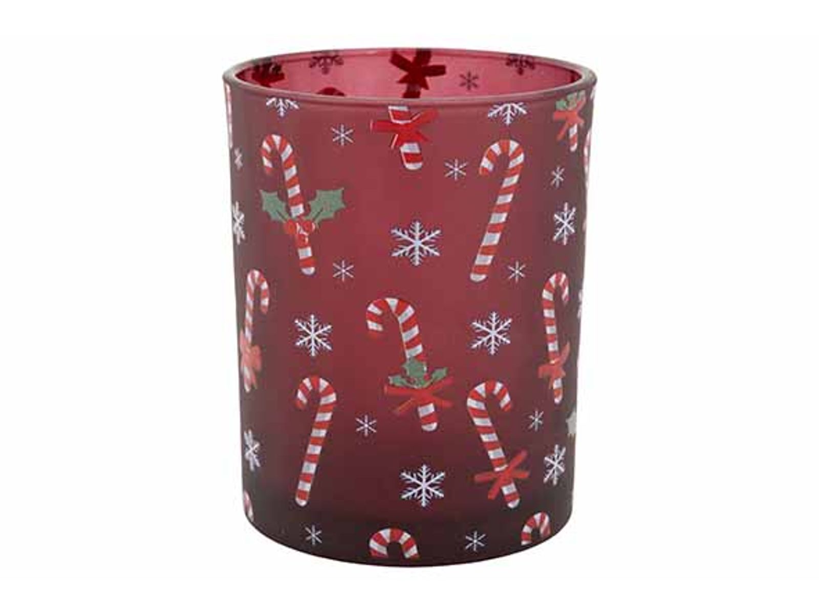 Theelichthouder Candy Cane Bordeaux 10x1 0xh13cm Glas