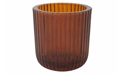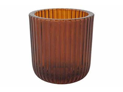 Theelichthouder Ribs Bruin 9x9xh9cm Glas