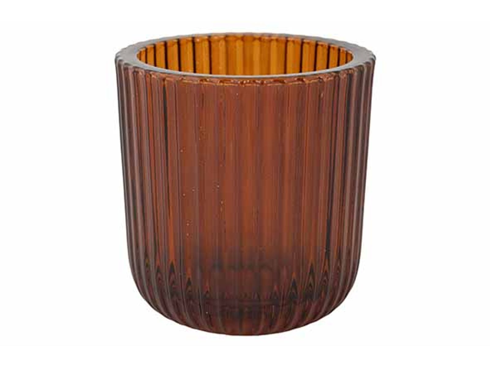 Cosy @ Home Theelichthouder Ribs Bruin 9x9xh9cm Glas