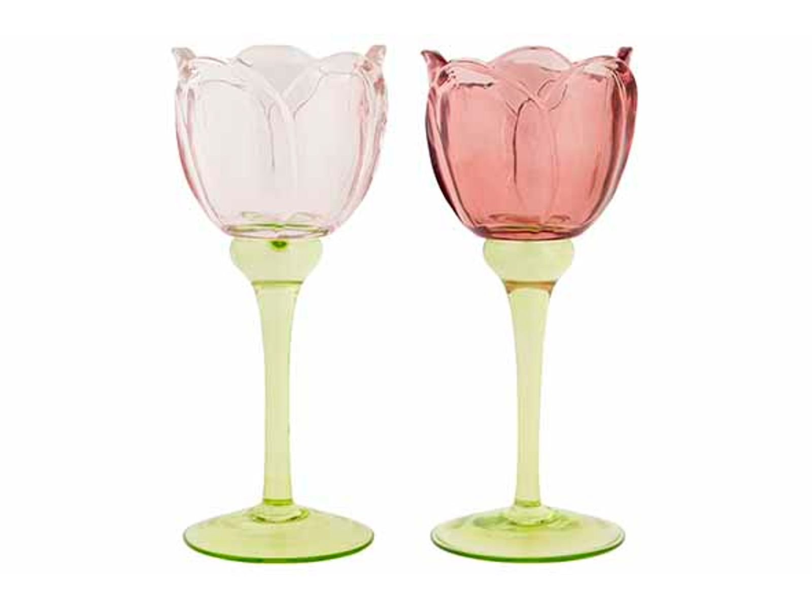 Theelichthouder Rose 3ass 8x8xh20cm Glas