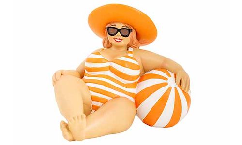 Dame Lying On Beatch Wit Oranje 18x15x H13cm Polyresin