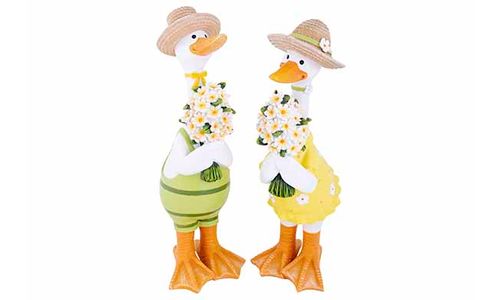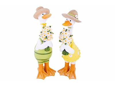 > Lente Zomer Figuur  > Cosy @ Home  > Eend Standing Flowers Green Geel 13,3x16 ,5xh41cm Resin