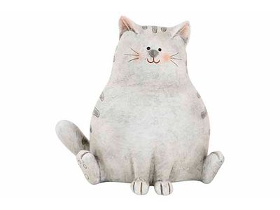 Kat Stripes Grijs 18x11,5xh16,5cm Resin