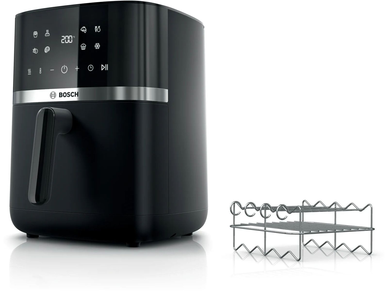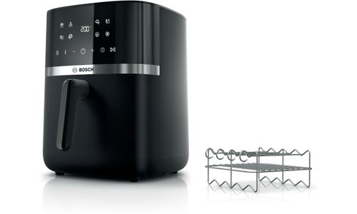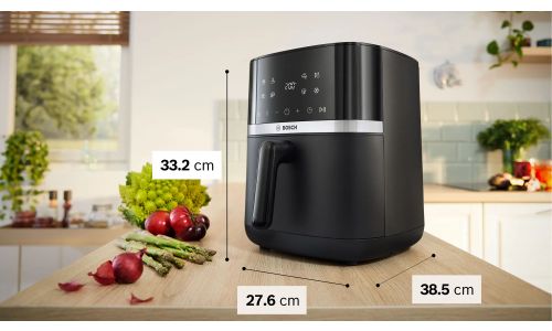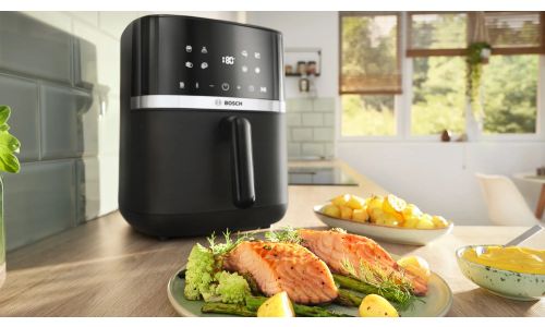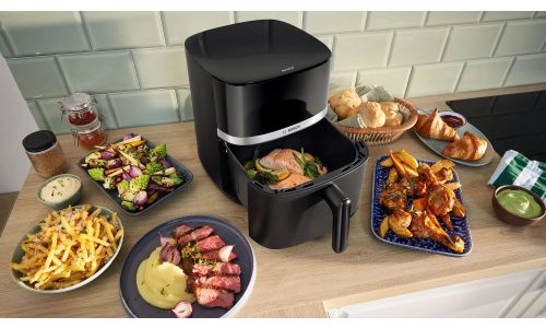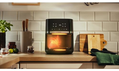 Met de Bosch Serie 4 Airfryer kook je tot wel 60%* sneller, zodat je minder tijd hoeft te wachten en meer tijd kunt besteden aan het genieten van je maaltijd. Bovendien zorgt de tijdsbesparing bij het koken ervoor dat je energieverbruik tot wel 70%* kan verminderen. *Intern getest tijdens het koken van een portie voeding van gemiddeld gewicht (300 g), in vergelijking met de onder/bovenwarmte-verwarmingsmodus van een conventionele 71 liter oven met energielabel A+ tijdens een standaard programma op 200 °C.