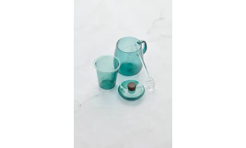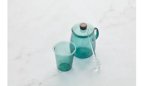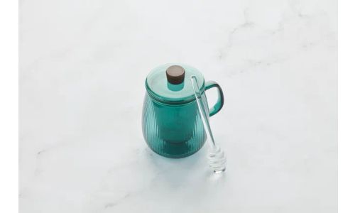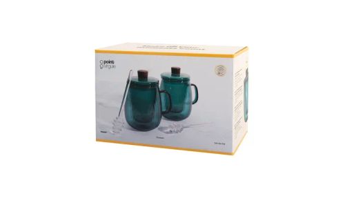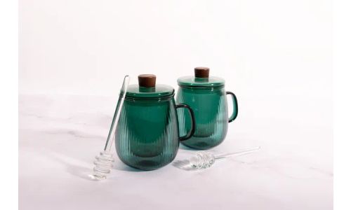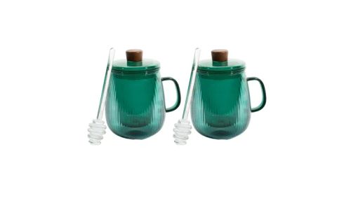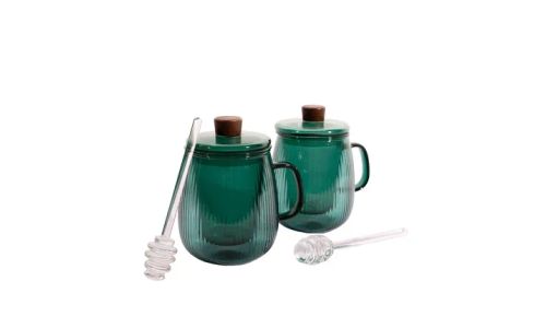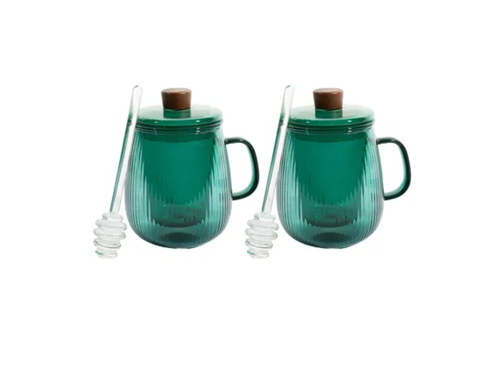 set van 2 theemokken met honinglepel in borosilicaatglas 600ml Forest Green