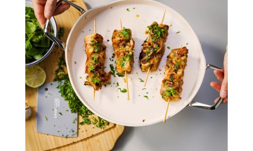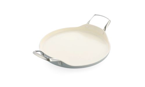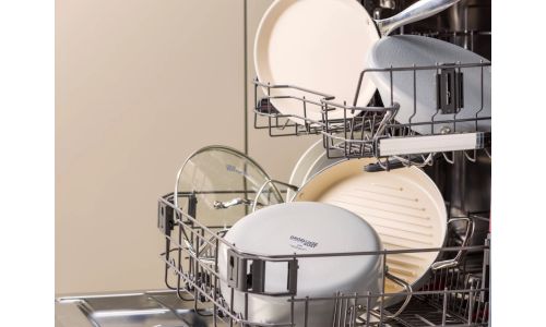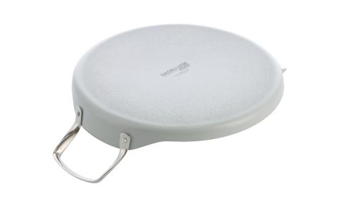 De aluminium pannen van Dagelijkse Kost hebben een keramische antiaanbaklaag, die de warmte snel en gelijkmatig geleidt. De pannen zijn zonder moeite schoon te maken en mogen ook in de vaatwas. Daarnaast hebben de pannen een ovenvaste greep in roestvrijstaal, kunnen op alle vuren inclusief inductie en zijn ovenvast tot 220°C. Echte allrounders dus, precies het soort pannen waarmee Jeroen Meus graag kookt. En het oog wil ook wat: deze collectie heeft een mooie lichtgrijze kleur en staat prachtig in elke keuken.
