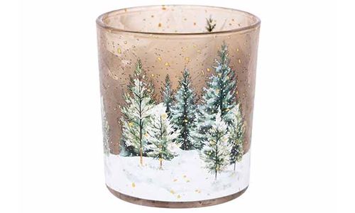 Theelichthouder Snow Tree Groen Wit 7,3 X7,3xh8cm Rond Glas