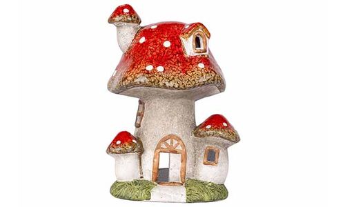 Theelichthouder Mushroom Rood Wit 15x14x H21cm Keramiek