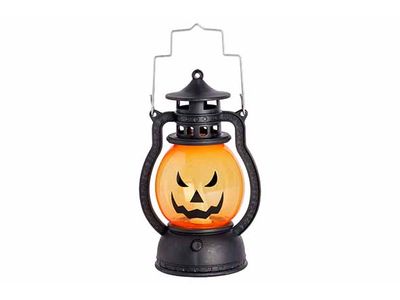 Lantaarn Pompoen Zwart Oranje 9x9xh13cm Kunststof Incl 2lr44 Batt